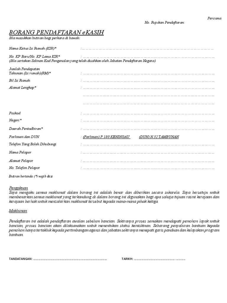 Borang Pendaftaran E Kasih Gabrieltrf