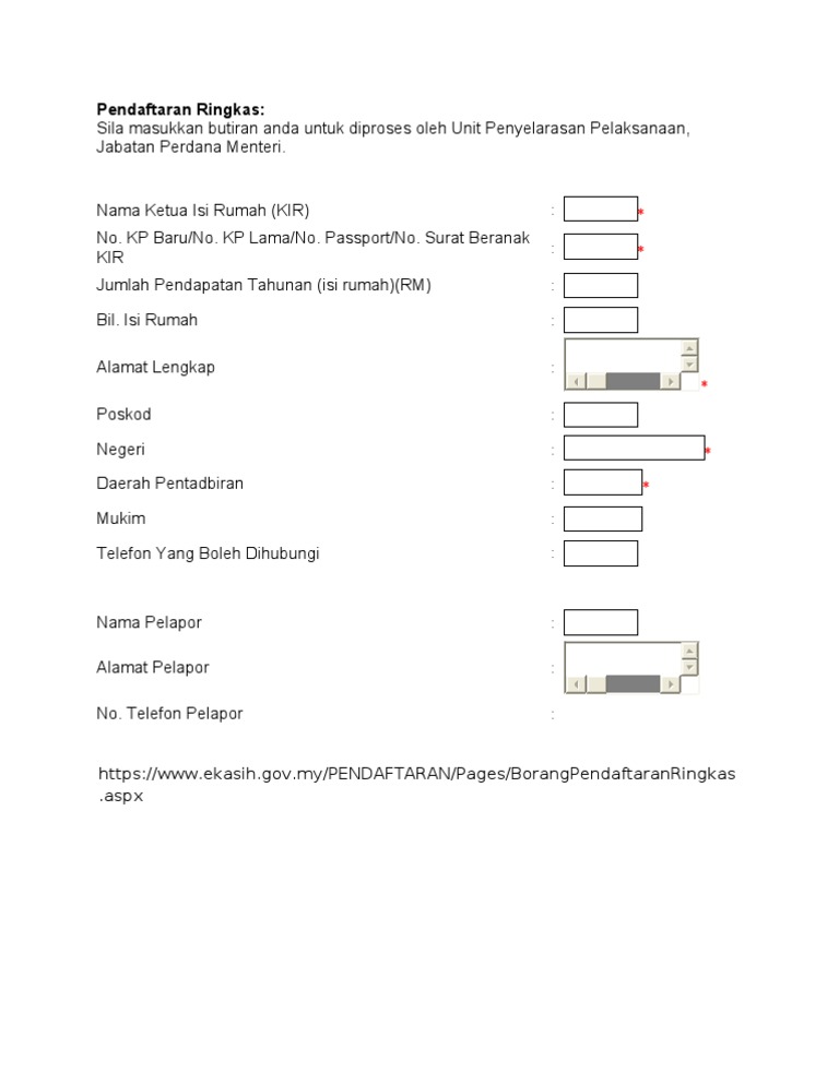Ianya ditubuhkan pada 2007 sebagai sistem pangkalan data keluarga miskin yang diwujudkan di. Borang permohonan ekasih online. E-Kasih 2022 daftar permohonan borang online semakan status.